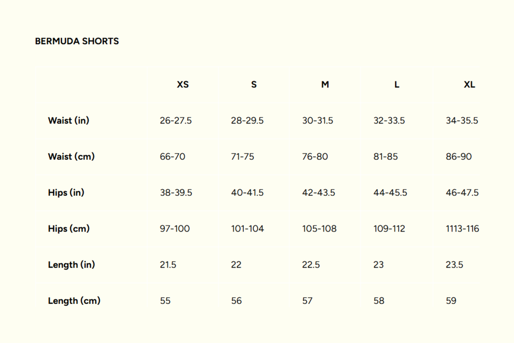Tailored bermuda shorts designed to fall on or below the knee. Features belt loops with side and back pockets. Material is a cotton twill fabric. Model is 5'9 and is wearing a size XS. Take your normal size for a mid to high waist fit. Take one size up for a mid to low waist fit.